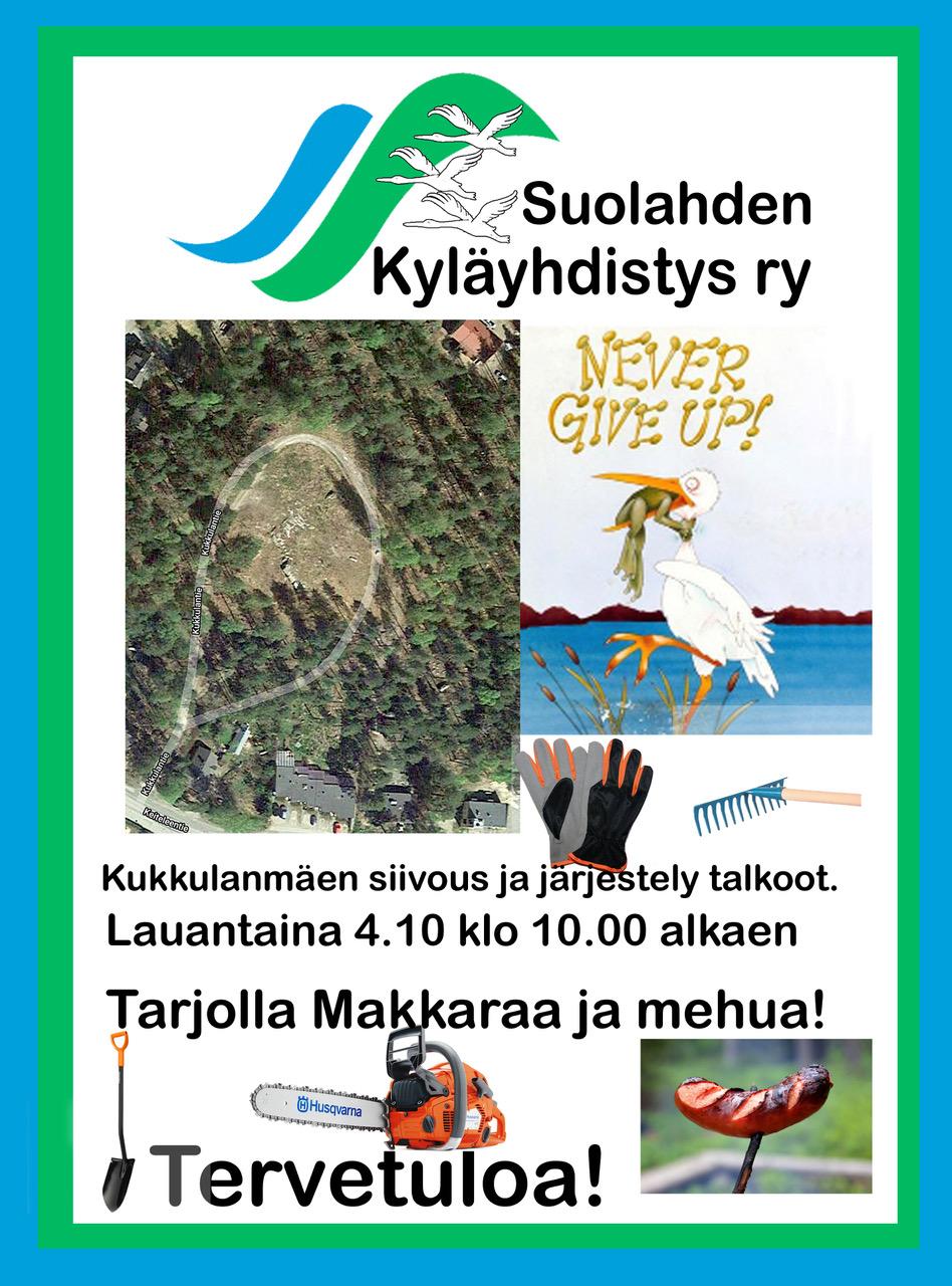 Kukkulanpuiston raivaustalkoot lauantaina 4.10. klo 10 alkaen. Osoite Kukkulantie 1. Puutarhahansikkaat mukaan.