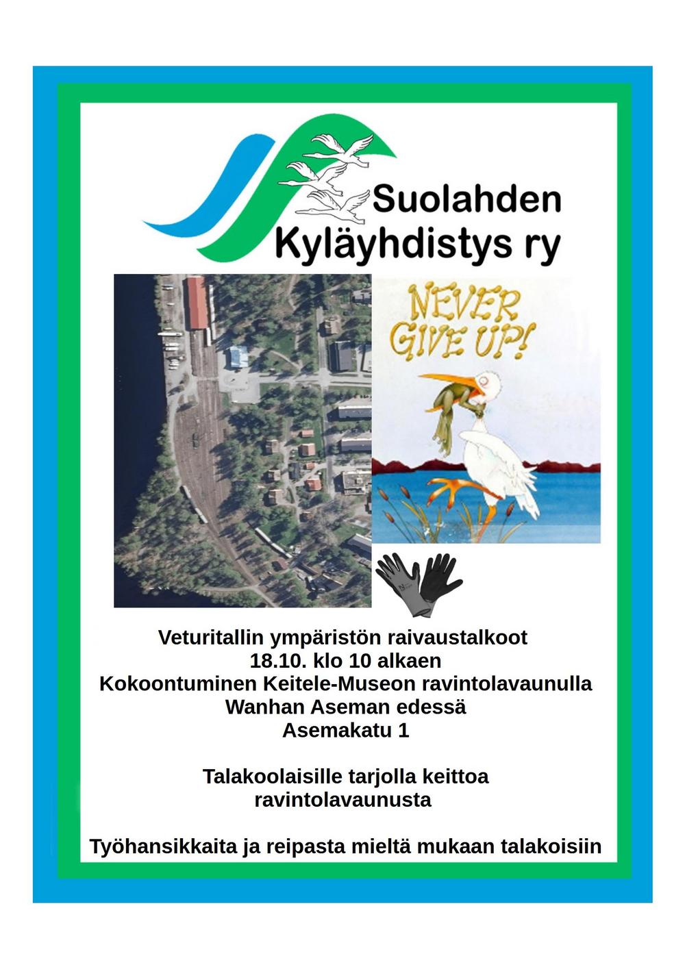 Veturitallin ja Wanhan aseman alueen raivaustalkoot lauantaina 18.10. klo 10. Puutarhahansikkaita, oksasaksia ja -sahoja mukaan.